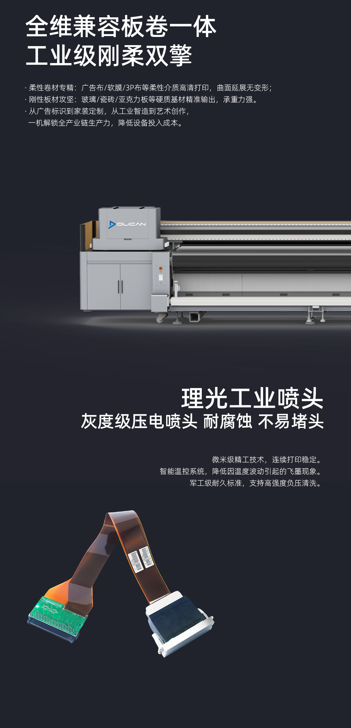 產品描述:工業級UV網帶打印機,打印幅面6米,板卷一體打印平臺,應用更廣泛